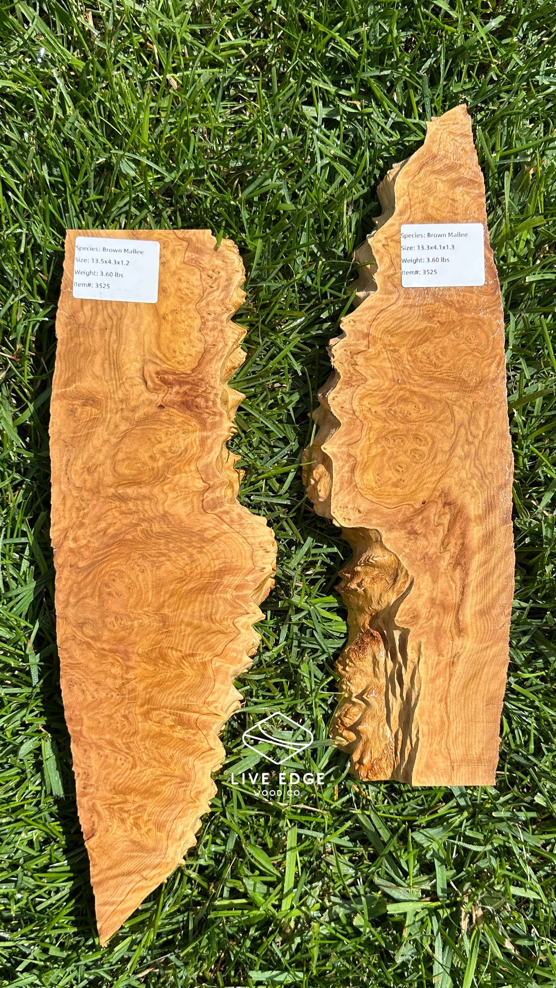 Premium Highly Figured Brown Mallee Burl Set Size: 1@13.3"x4.1"x1.3" and 1@13.5"x4.3"x1.2"
