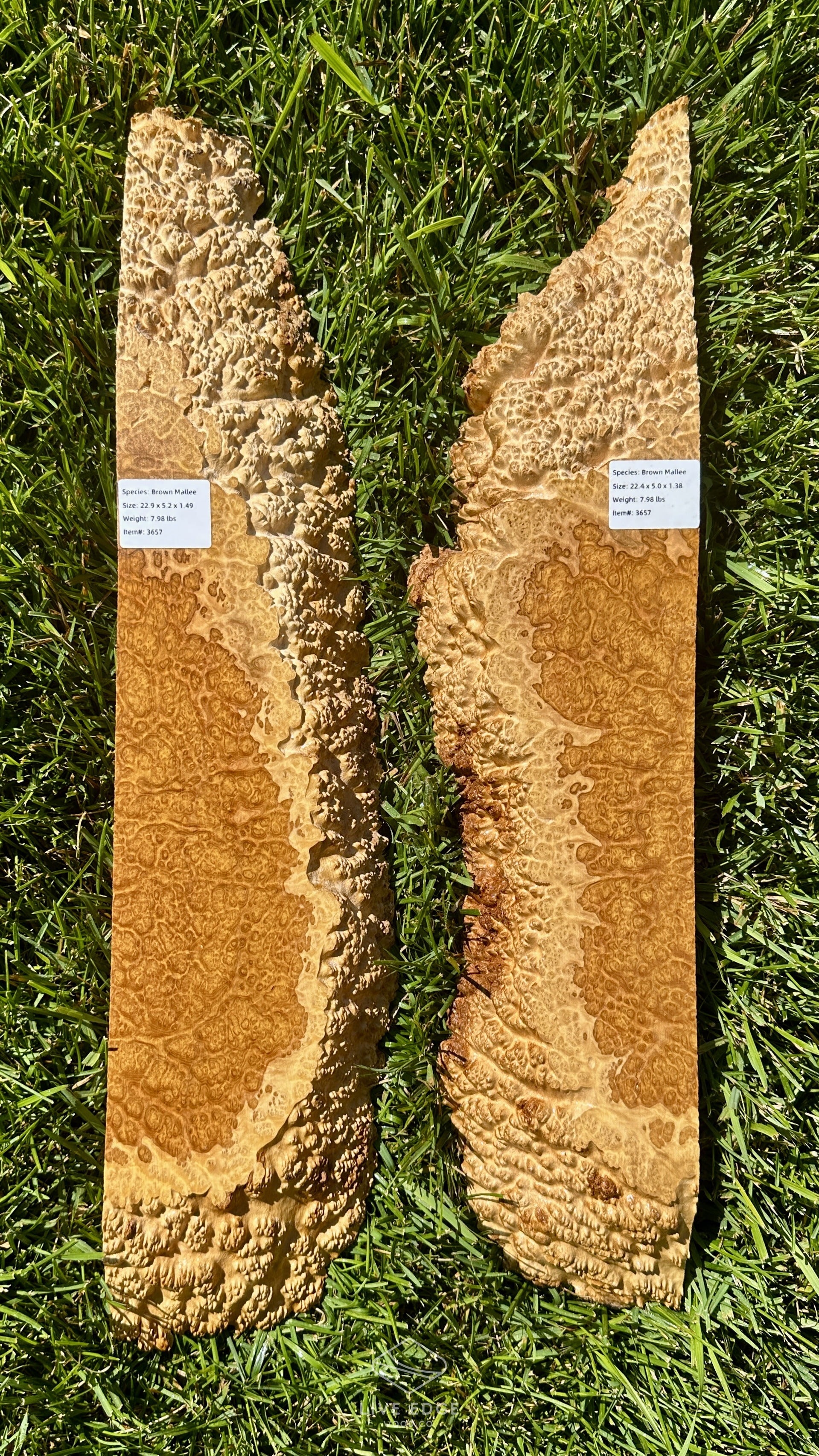 Premium Highly Figured Brown Mallee Burl Set Size: 1@22.9"x5.2"x1.49" and 1@22.4"x5"x1.38"