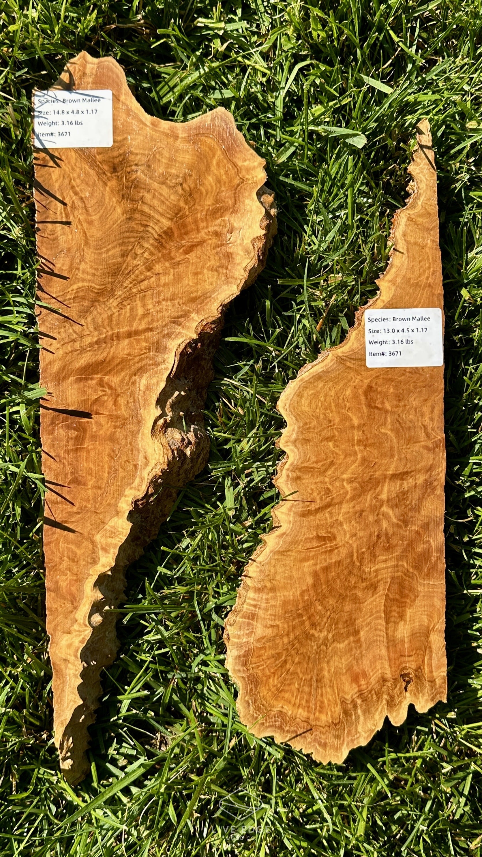 Premium Highly Figured Brown Mallee Burl Set Size: 1@13"x4.5"x1.17" and 1@14.8"x4.8"x1.17"