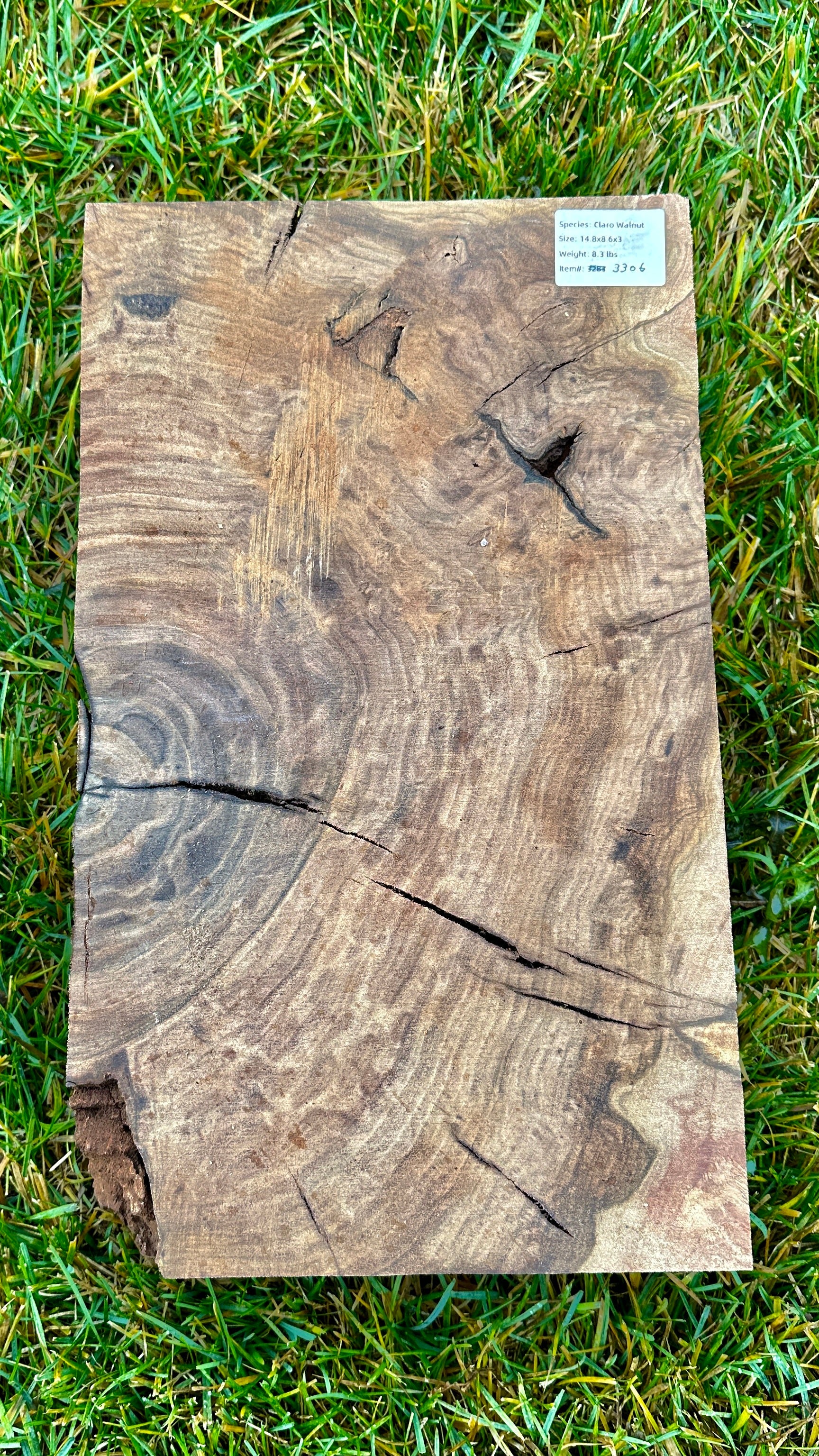 Premium Highly Figured Claro Walnut Burl Block Size: 1@14.8"x8.6"x3"