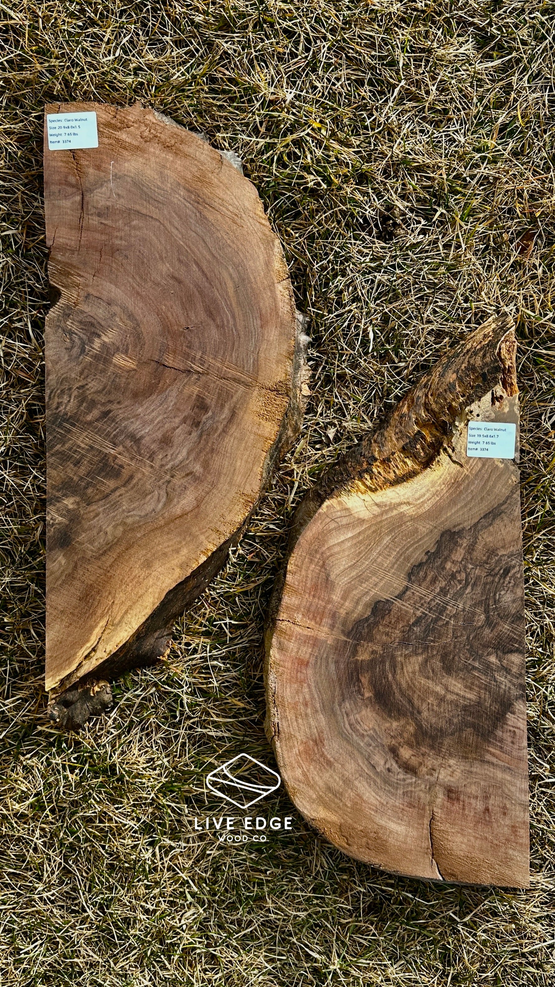 Premium Highly Figured Claro Walnut Burl Set Size: 1@20.9"x8"x1.5" and 1@19.5"x8.6"x1.6"