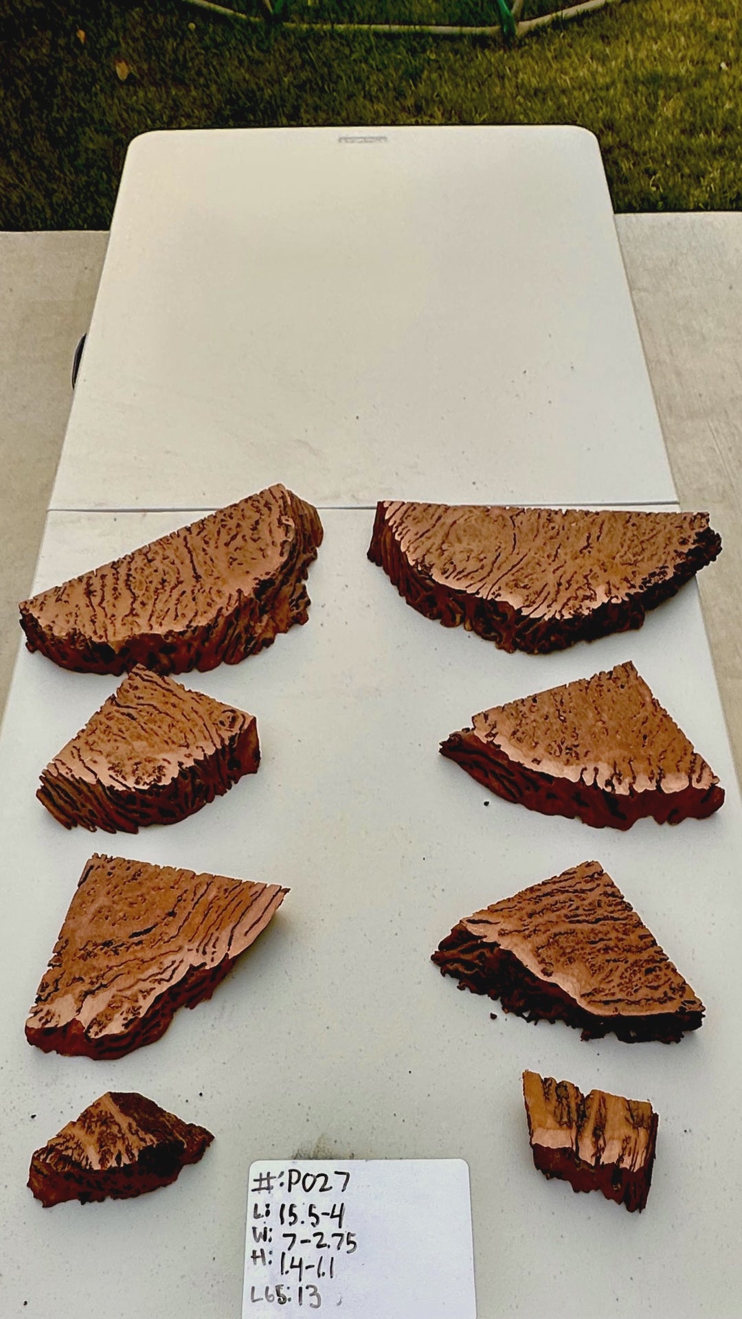 Premium Highly Figured Red Box Burl Multi Sets Size: 1@15.5-4"x7-2.75"x1.4-1.1"