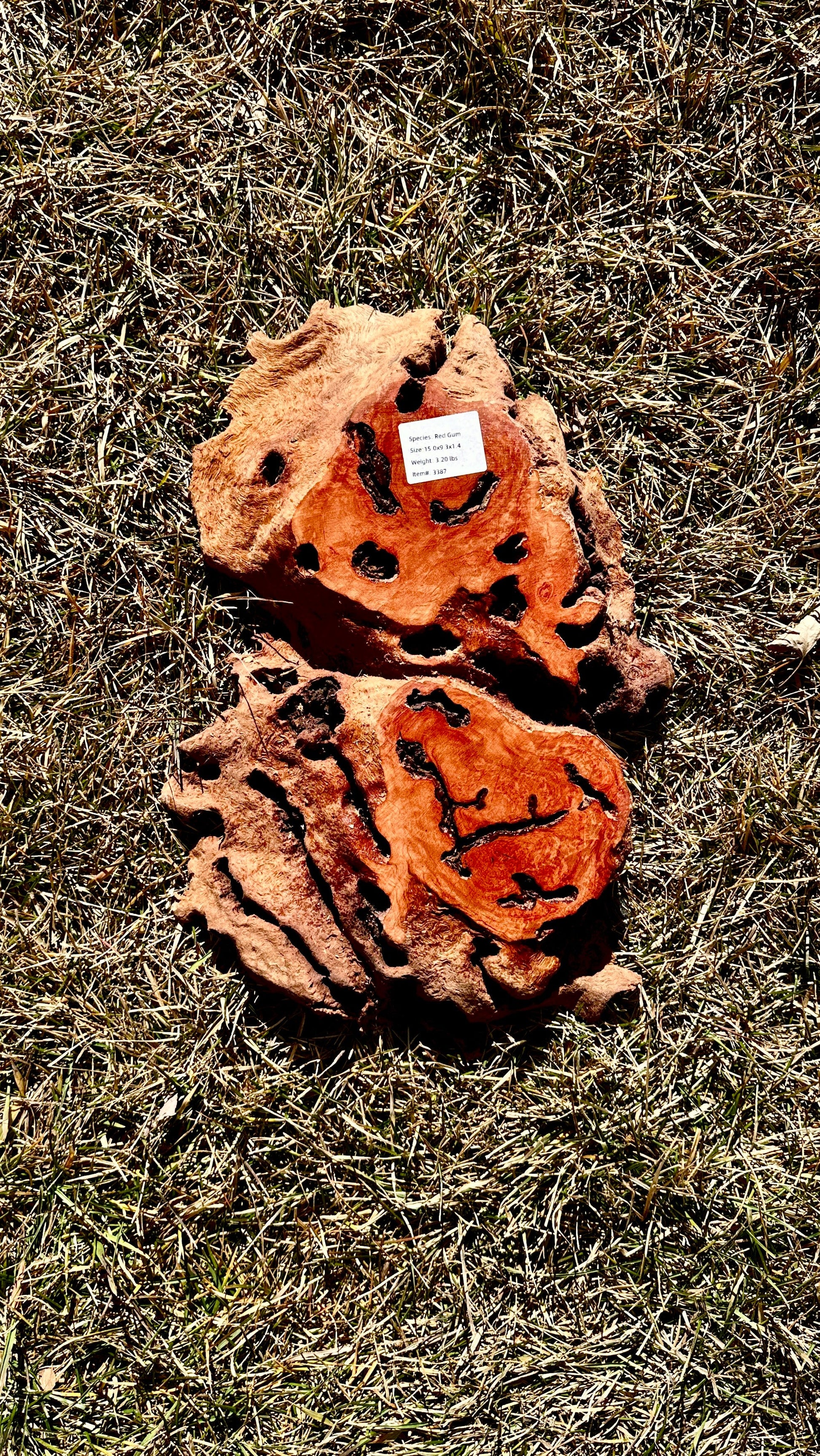 Premium Highly Figured Red Gum Burl Small Full Size: 1@15"x9.3"x1.4"