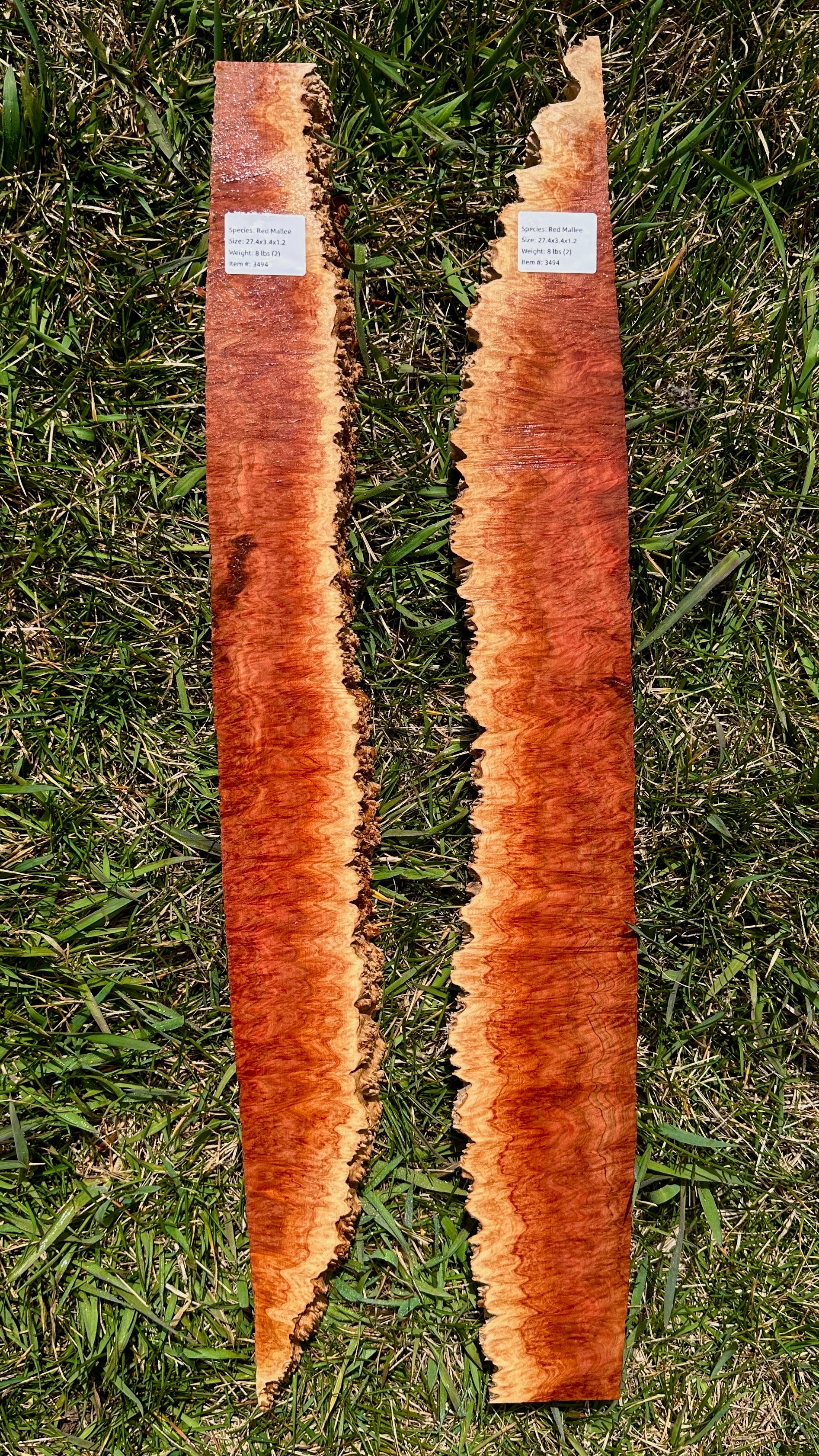 Premium Highly Figured Red Mallee Burl Set Size: 1@27.4"x3.4"x1.2" and 1@27.4"x3.4"x1.2"