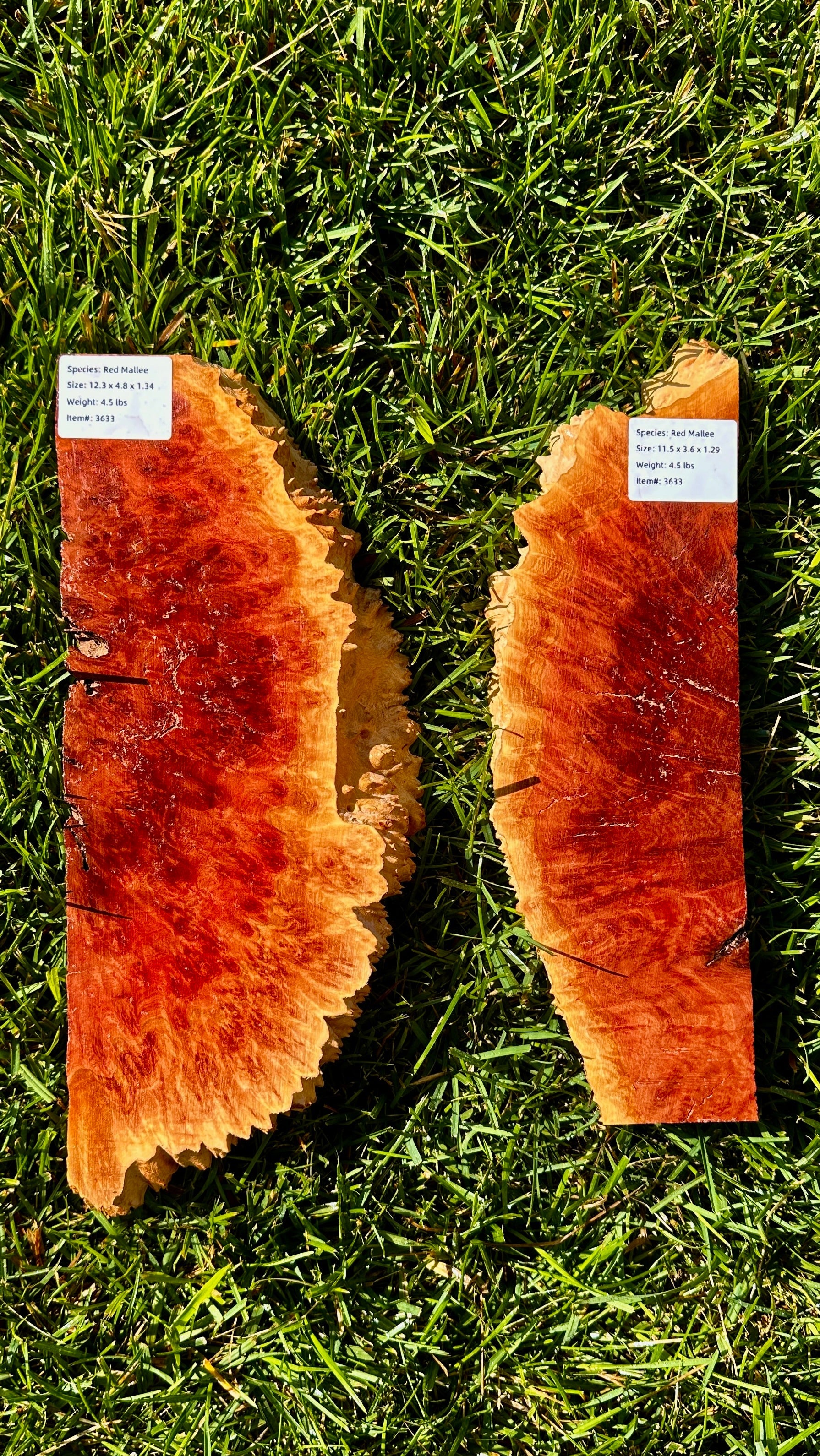 Premium Highly Figured Red Mallee Burl Set Size: 1@12.36"x4.8"x1.34" and 1@11.5"x3.6"x1.29"