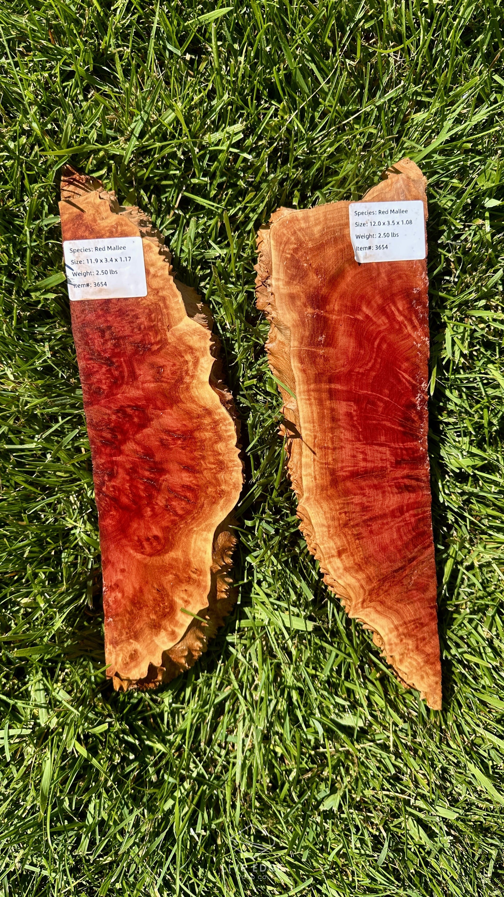 Premium Highly Figured Red Mallee Burl Set Size: 1@11.9"x3.4"x1.17" and 1@12"x3.5"x1.08"